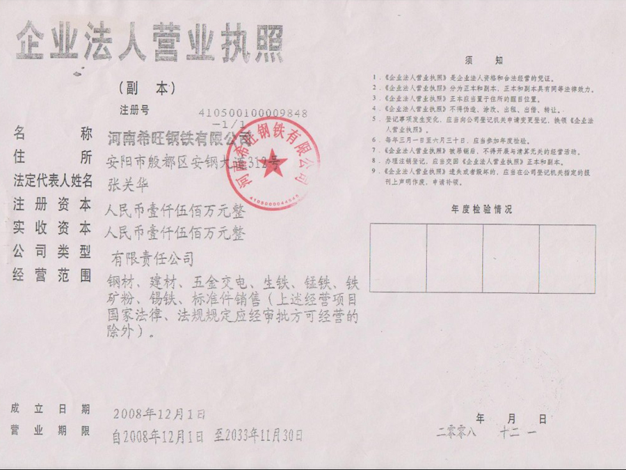 河南希旺钢铁有限公司